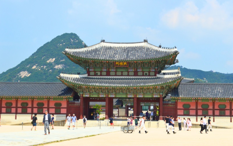 Cung điện Gyeongbokgung – Biểu tượng của triều đại Joseon: Xây dựng từ năm 1395, cung điện mang vẻ đẹp uy nghi và được coi là trái tim lịch sử và văn hóa của Seoul. Quý khách có thể tản bộ qua những cổng thành tráng lệ, chiêm ngưỡng kiến trúc cung đình tinh xảo. Điểm nhấn độc đáo là lễ đổi gác hoàng cung, tái hiện sinh động nét uy nghiêm và trang trọng của vương triều xưa. (Tùy thuộc khung giờ đoàn tới)