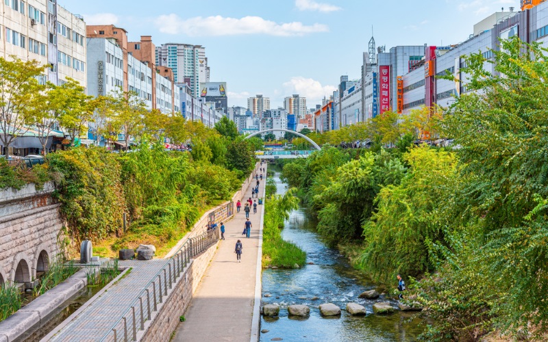 Giữa nhịp sống sôi động của thủ đô Seoul, suối Thanh Khê Xuyên (Cheonggyecheon) hiện lên như một dải lụa mềm uốn quanh những tòa nhà hiện đại, mang đến hơi thở trong lành và nét dịu dàng cho thành phố.
