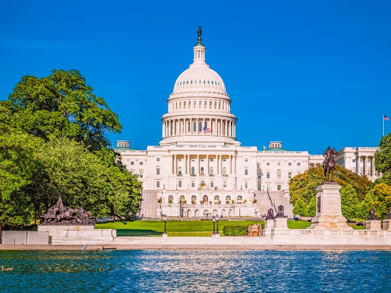 • Điện Capitol (Toà nhà lưỡng viện quốc hội): trung tâm quyền lực lập pháp của Hoa Kỳ với kiến trúc tân cổ điển đặc sắc, nơi diễn ra các phiên họp quan trọng của Hạ viện và Thượng viện. Điện Capitol kết hợp với Nhà Trắng và Tòa án Tối cao tạo nên mô hình “Tam quyền phân lập” độc đáo của Liên bang Mỹ.