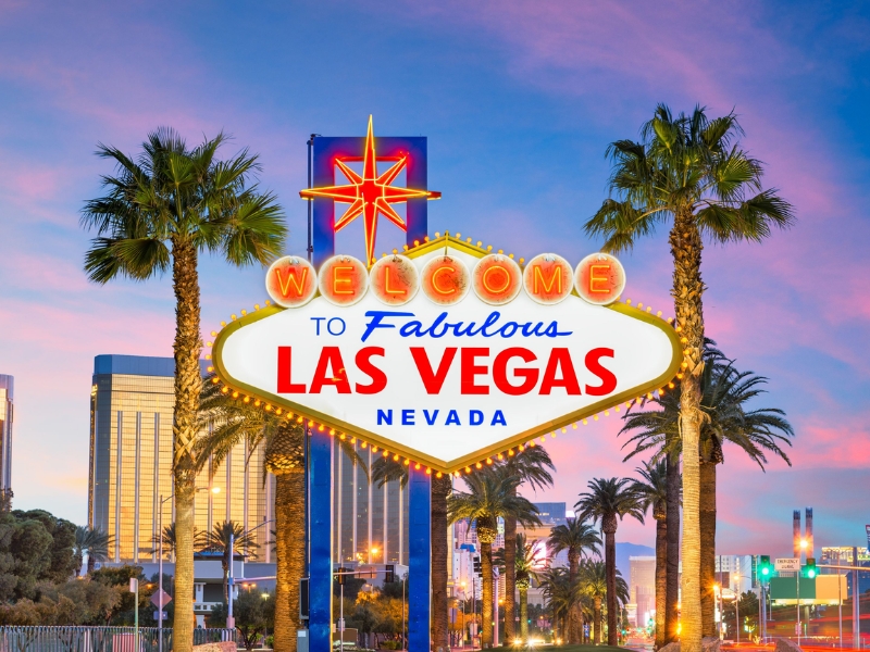Buổi tối: Đến Las Vegas, sau khi nhận hành lý, xe đón đoàn về khách sạn nhận phòng nghỉ ngơi sau chặng bay dài. Quý khách tự do khám phá Las Vegas về đêm, chiêm ngưỡng thành phố rực rỡ ánh đèn và hoành tráng, thử vận may tại các casino hoặc thưởng thức các live show đặc sắc (Chi phí tự túc).