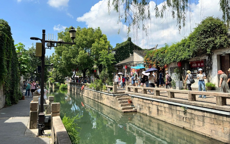 • Tự do dạo quanh khu vực phố cổ, một số điểm gợi ý: Bưu điện Wuzhen, quán trà Qiaoliqiao, Tháp Liên Hoa Trắng – điểm ngắm toàn cảnh Ô Trấn, xưởng nhuộm Caomu Bense – chụp ảnh với những tấm vải nhuộm màu xanh, tự do dạo thuyền trong Ô Trấn