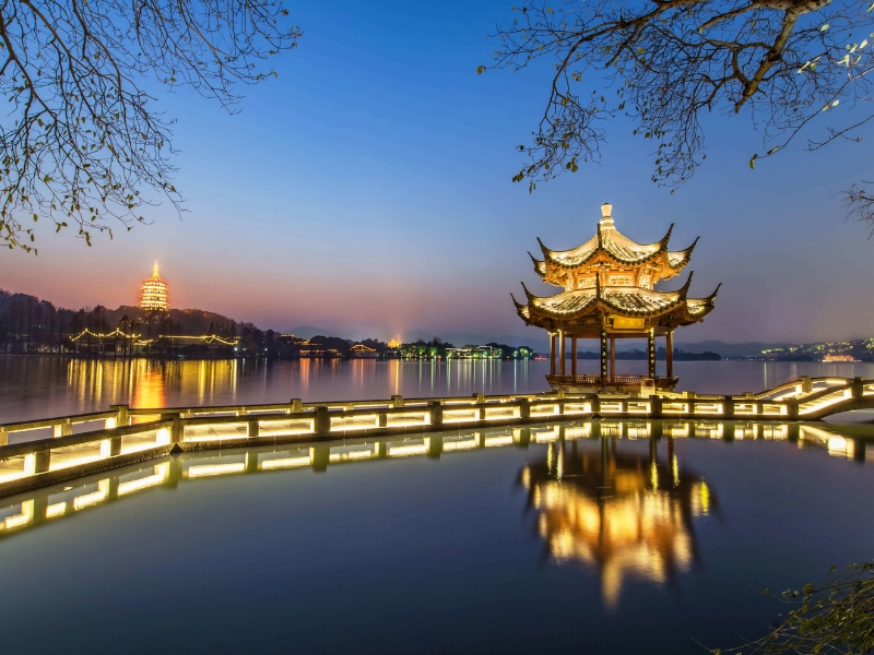 • Thưởng ngoạn du thuyền Tây Hồ – Viên ngọc tĩnh lặng nằm ở phía tây thành phố Hàng Châu. Với chiều dài 3,3 km và chiều rộng 2,8 km, hồ nổi tiếng với cảnh đẹp hữu tình và văn hóa độc đáo. Năm 2011, Tây Hồ đã được UNESCO công nhận là Di sản Văn hóa Thế giới và cũng là di sản hồ duy nhất của Trung Quốc xuất hiện trong danh sách di sản này.